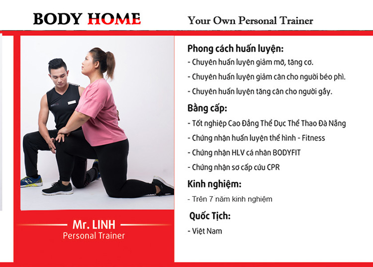 HLV Linh chuyên huấn luyện giảm mỡ, tăng cơ, giảm cân cho người béo phì, tăng cân cho người gầy. Với kinh nghiệm 4 năm.